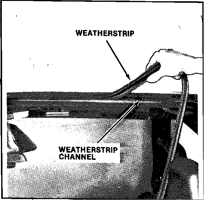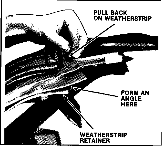 NOTE: As the weatherstrip is started into the channel, slightly pull it to form an angle with the weatherstrip retainer. This will provide an even butt joint when the hatch is in place.