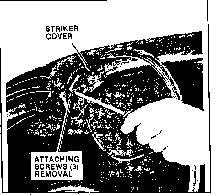 6. Remove the striker plate cover or "A" cap located at the top of the "A" pillar.