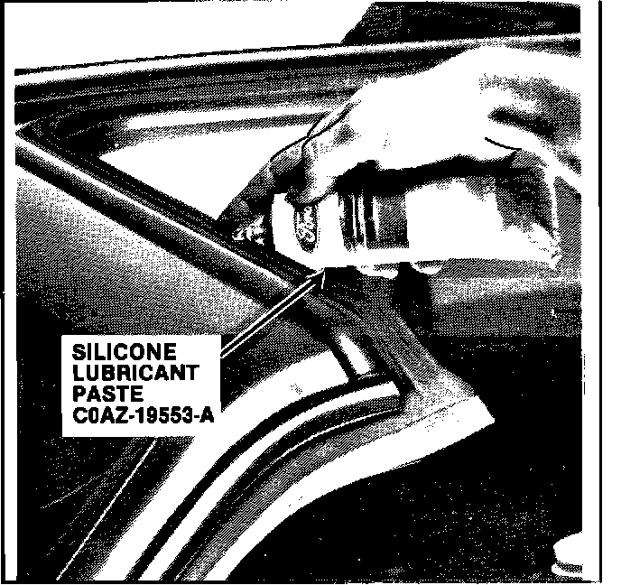 21. Lubricate all door weatherstrip surfaces with Silicone Paste Lubricant, COAZ-19553-A (or equivalent).