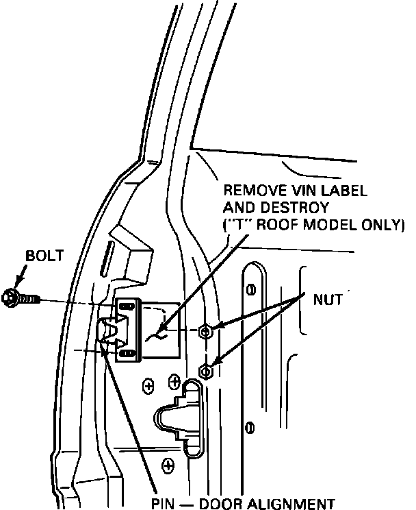 ACTION: To correct this, install a door alignment kit. Two (2) door alignment kits are available for service, one for "T" roof models and the other for convertible models. Refer to the following service procedure for detailed installation procedures.