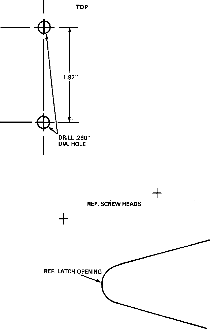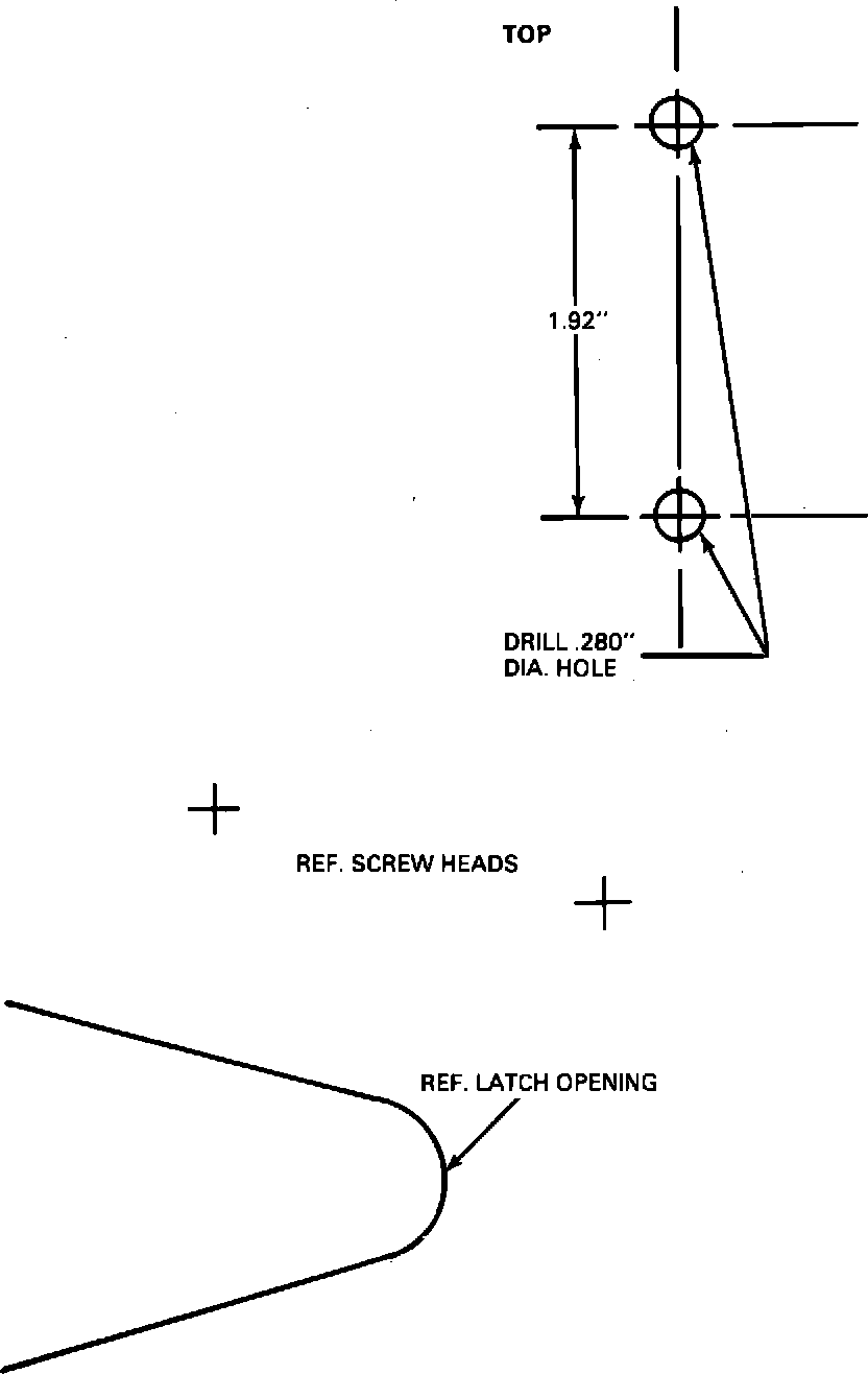 23. Position template number one (1) to the right door and template number two (2) to the left door. Drill two (2) 9/32" holes in each door, Figure 2.