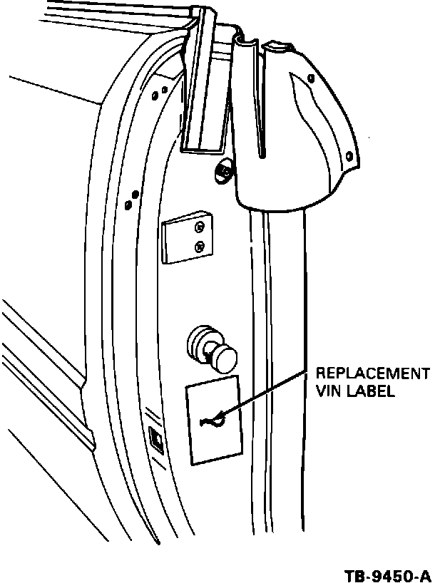 12. Install replacement "VIN" label on left "B" pillar below striker, Figure 5.