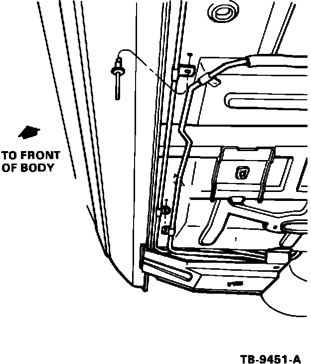 NOTE: To aid in installation, tie a string to the door alignment pin catch plate to make sure it does not drop inside the quarter panel.