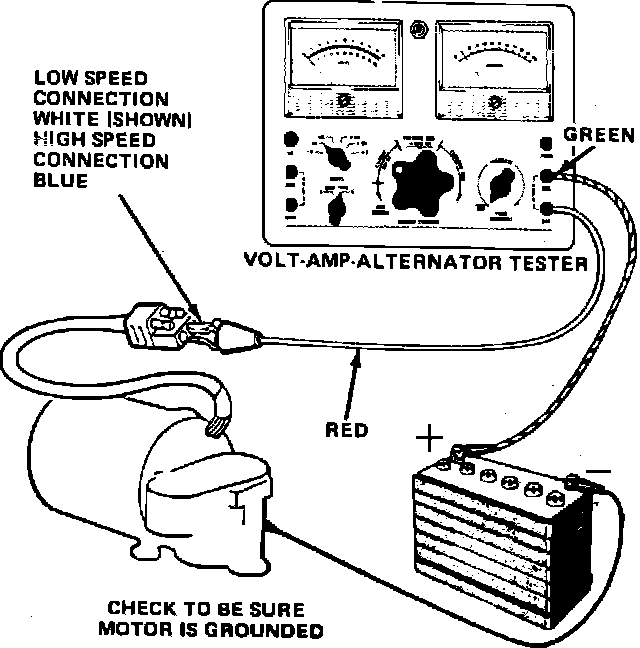 4. Motor should run in both test positions, and meter should indicate 3.5 amp draw or less.