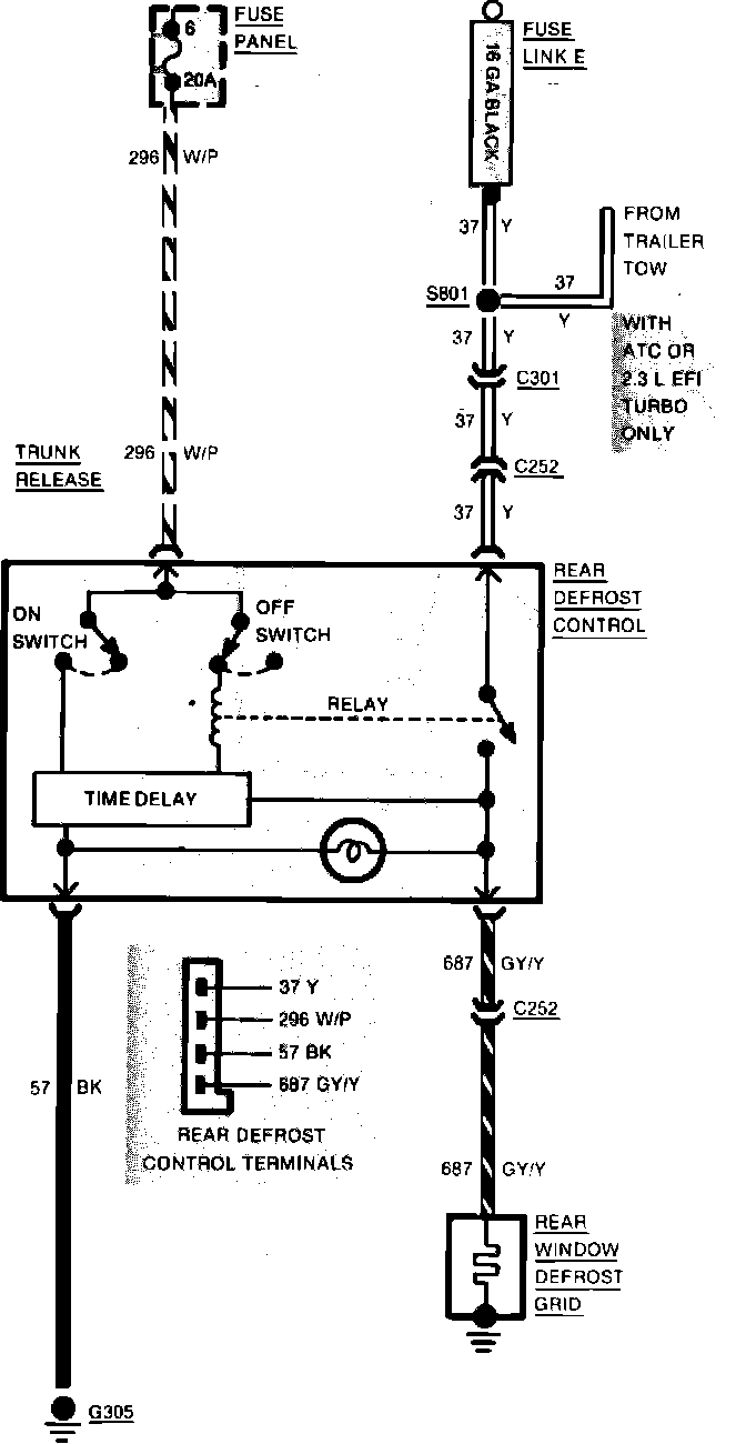 Fig. 86 Rear Window Defrost Wiring Circuit. 1984 Cougar & Thunderbird: