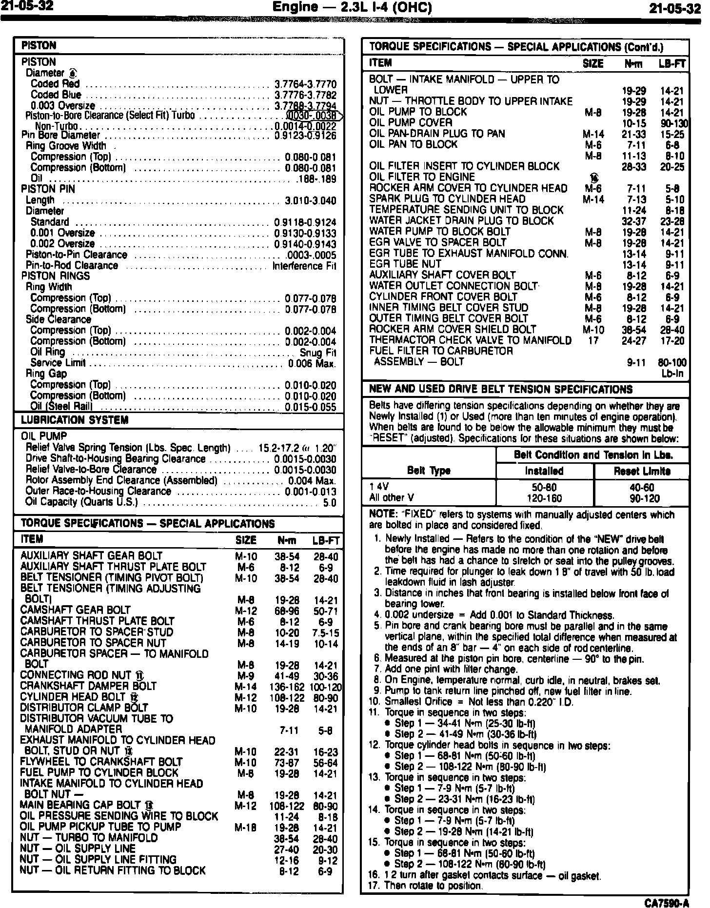 This article is provided to supply the latest updated specification information for servicing pistons on 1983 vehicles equipped with the 2.3L (OHC) EFI Turbo engine.