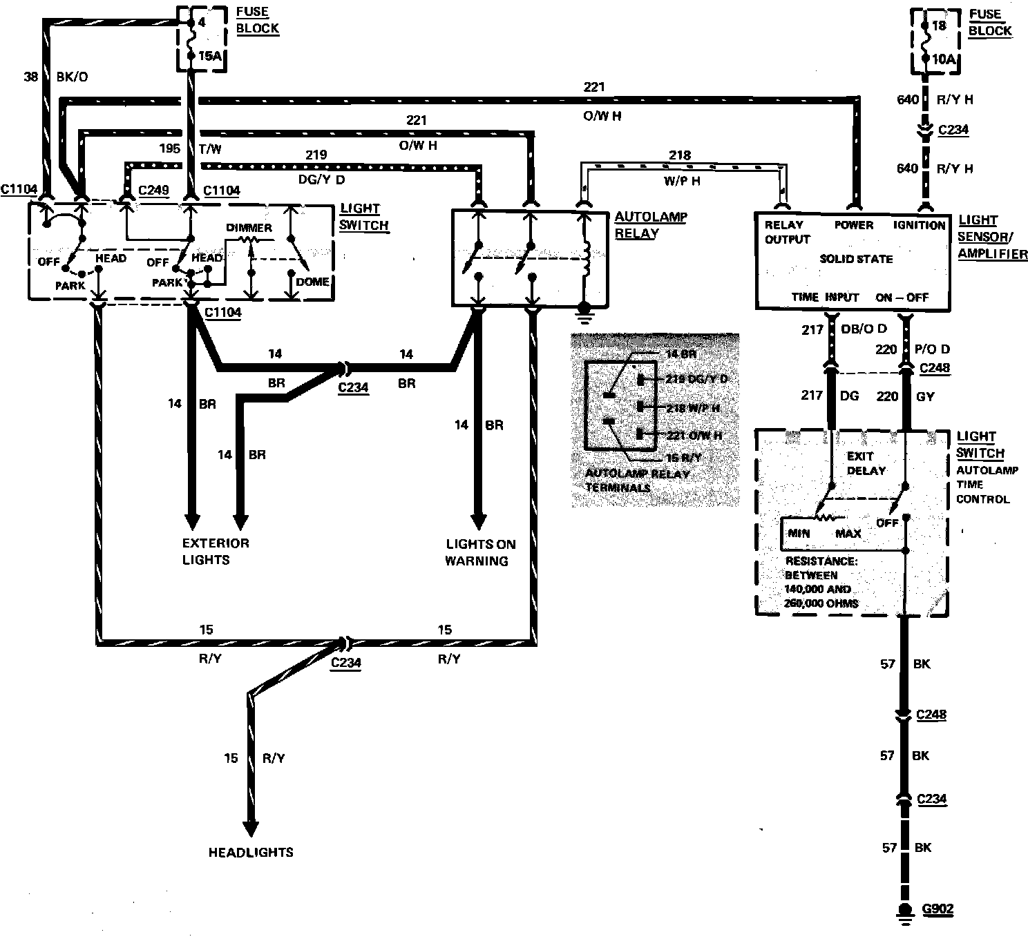 Fig. 18 Autolamp & Delayed Exit Wiring Circuit. 1983-84 Cougar & Thunderbird: