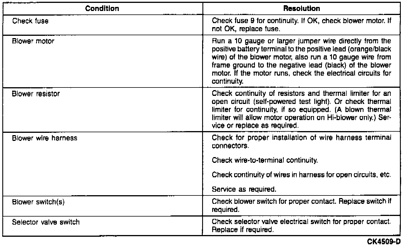 Blower Does Not Operate: