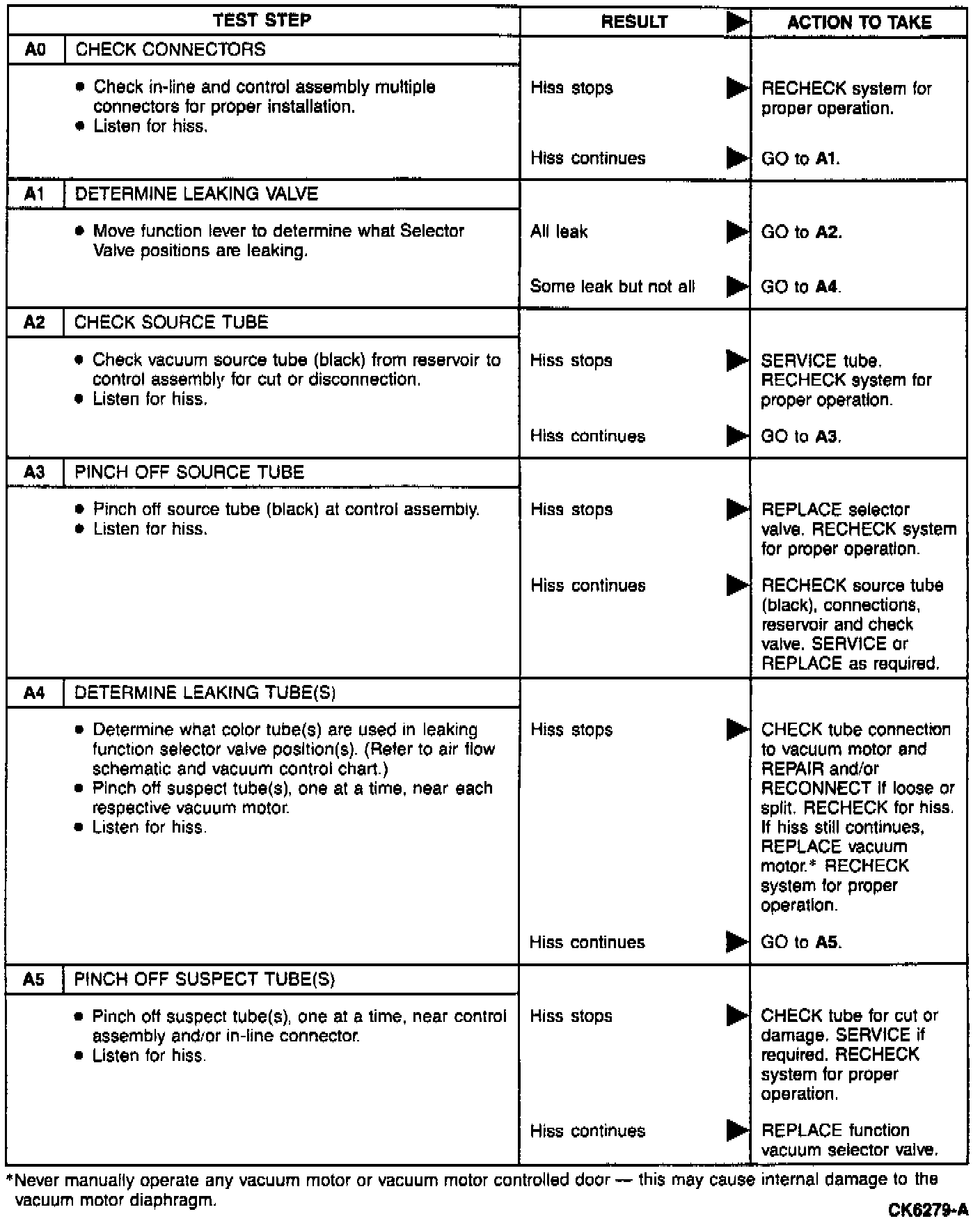 Hissing Vacuum System or Control Assembly Selector Valve