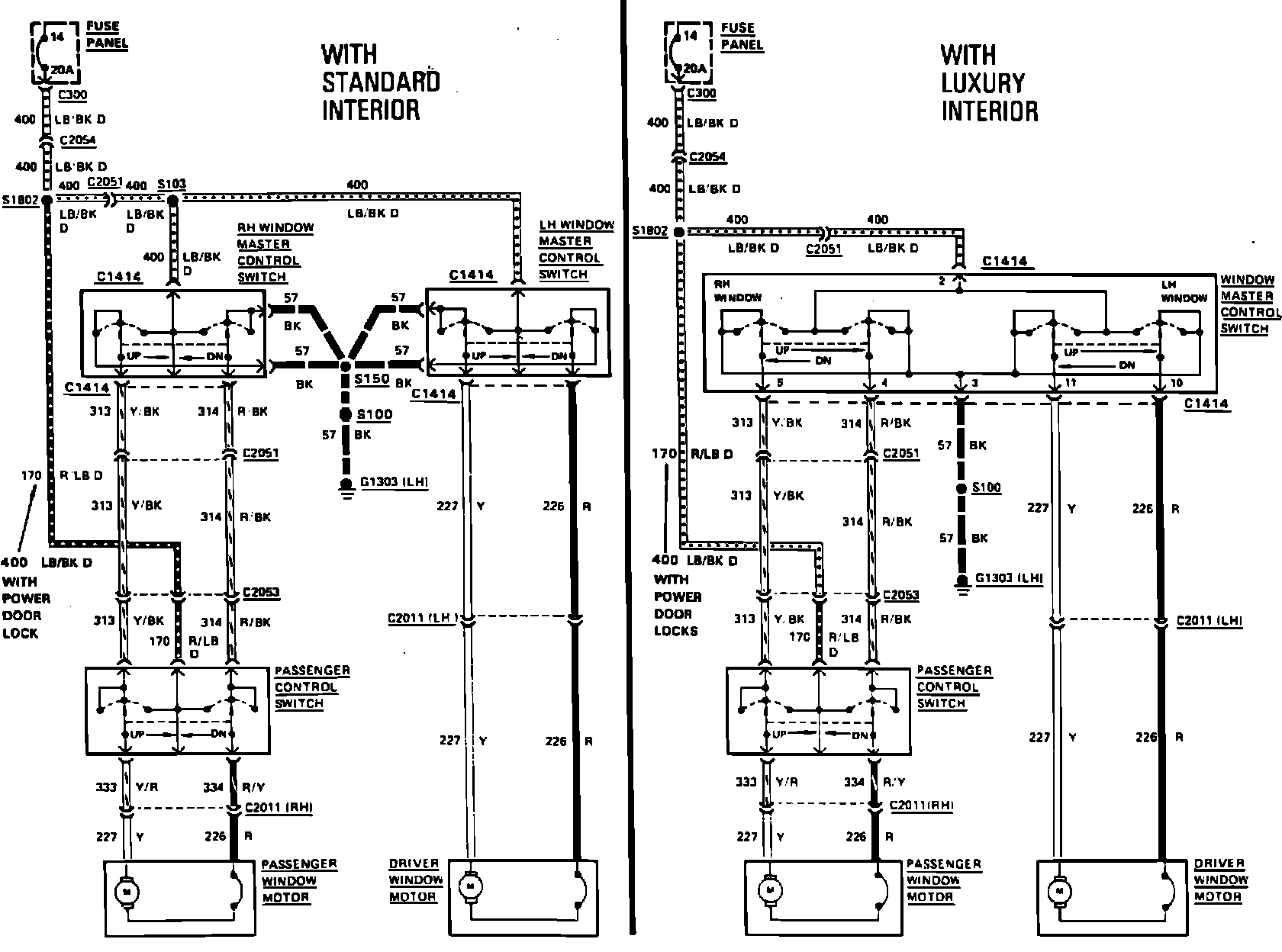 Fig. 52 Power Window Wiring Circuit. 1983-84 Crown Victoria & Grand Marquis (2 Door Models):