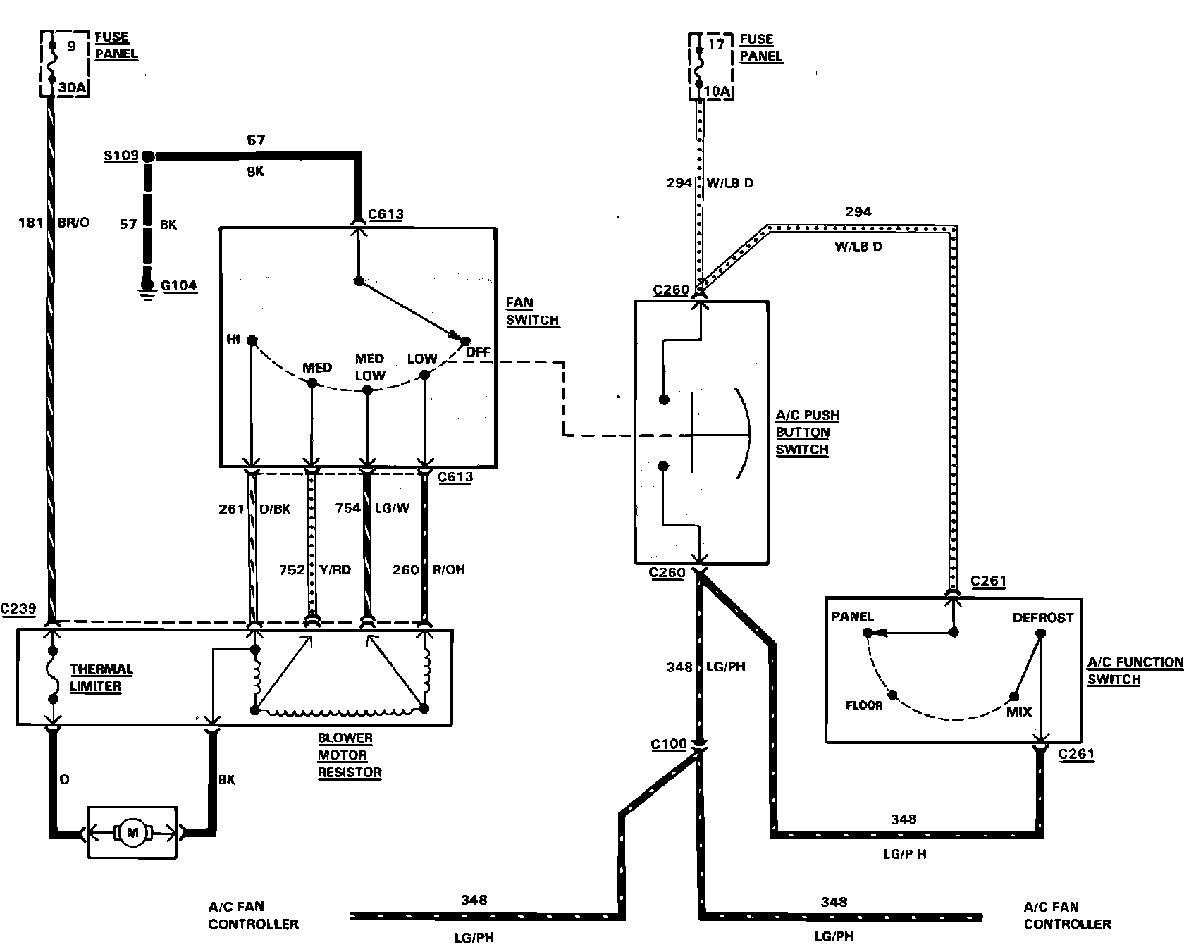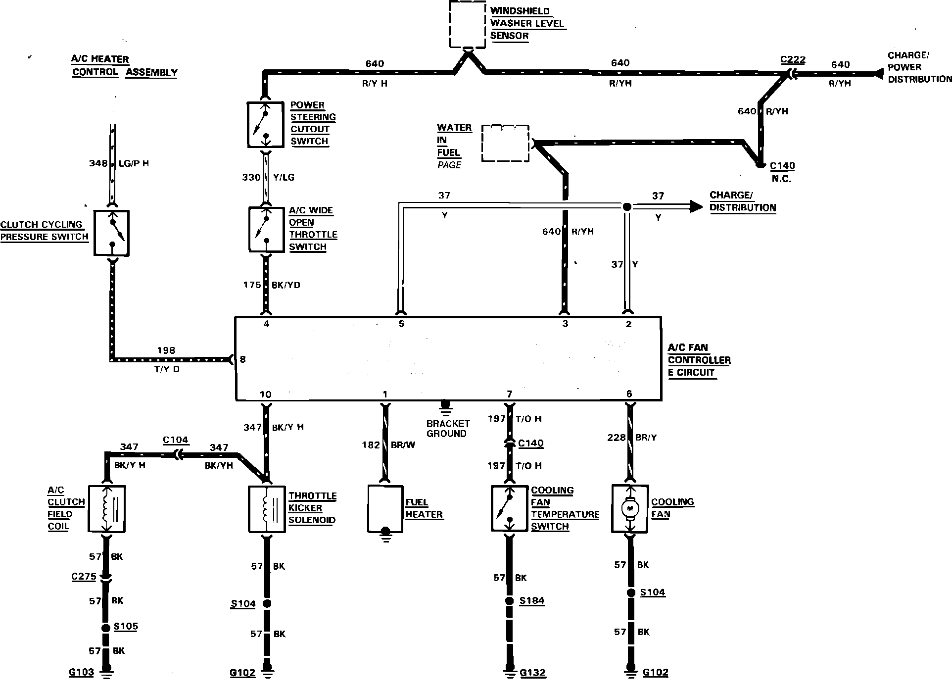 Fig. 13 Air conditioning, cooling fan & heater wiring circuit (Part 2 of 2). 1984 Escort, EXP & Lynx with manual transaxle & diesel engine: