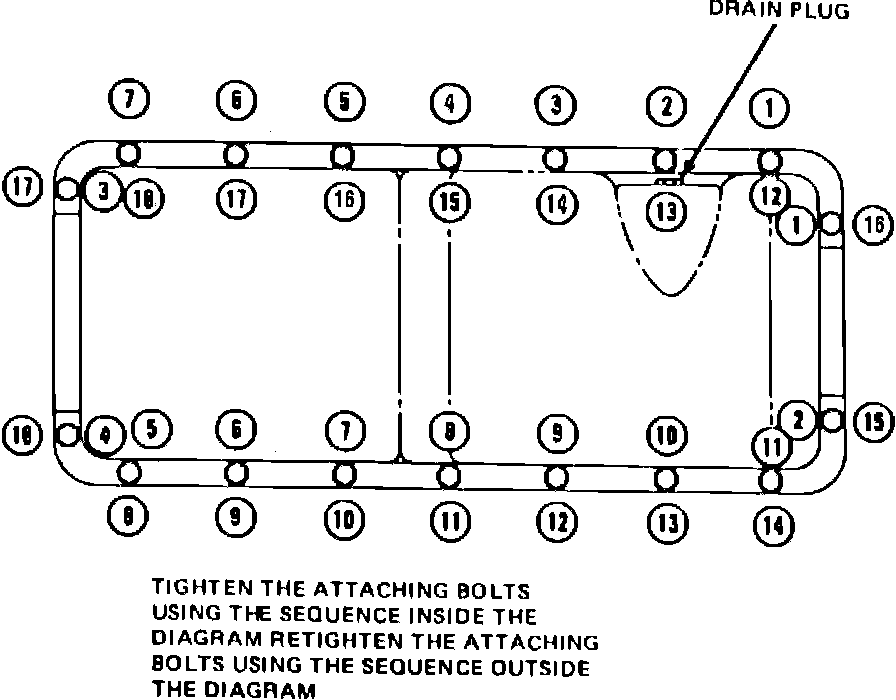 6. Reverse procedure to install using suitable sealant on all pan gaskets. Refer to Fig. 20, for oil pan bolt tightening sequence.