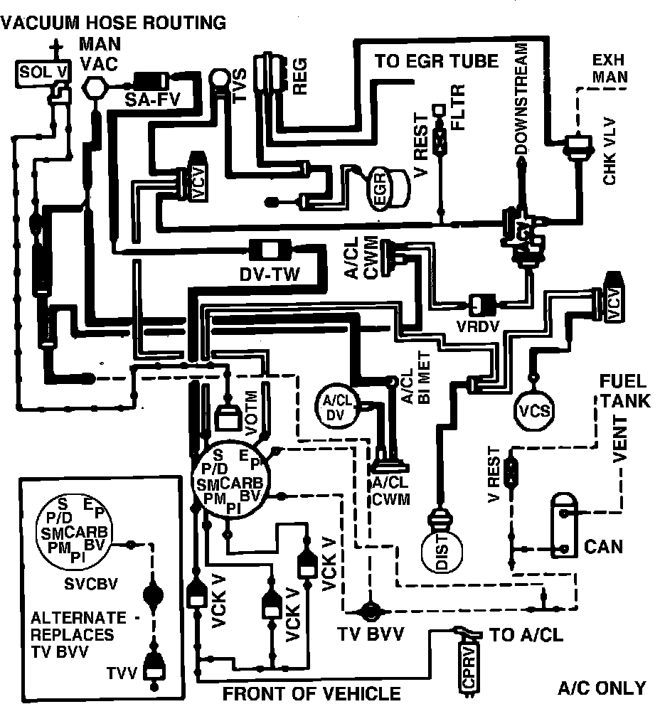 Fig. 3 Vacuum hose routing. 1984 4-97.6 w/man.. trans. calib. code 4-03K-R00 Federal:
