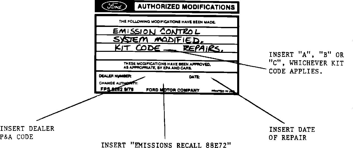 PREPARE THE DECAL AS SHOWN. AFFIX THE DECAL TO A FLAT, CLEAN SURFACE ON THE RADIATOR SUPPORT. ORDER THE DECALS ON YOUR WEEKLY STOCK ORDER PAD. (AUTHORIZED MODIFICATIONS DECAL, FORM FPS-8262).