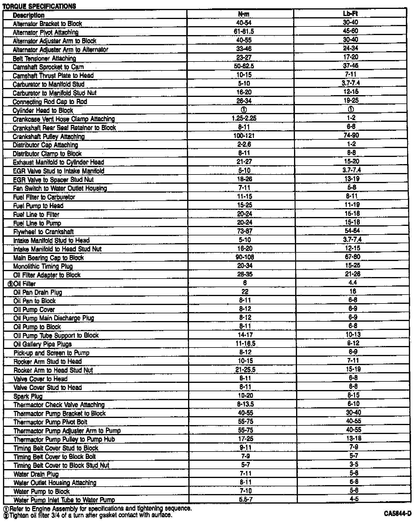 Torque Specifications: