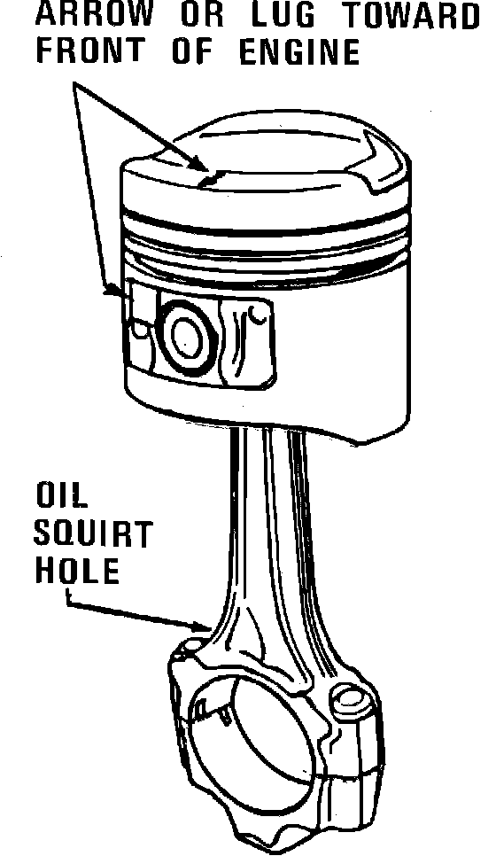 Assemble the piston to the rod with arrow or lug facing front of engine and numbered side of rod facing exhaust manifold side of engine, Fig. 9. Check side clearance between connecting rods at each connecting rod crankshaft journal. Clearance should be .004---.011 in.