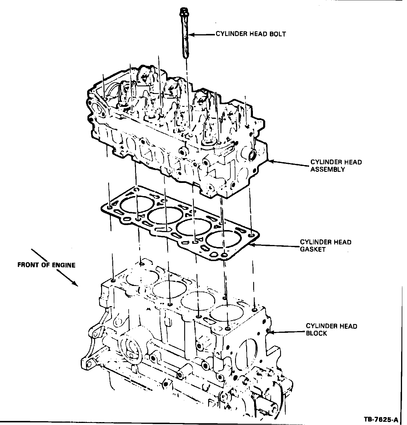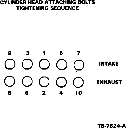 2. Using a torque wrench tool D81L-600-B or equivalent, tighten the bolts in sequence as shown in Figure 13, Section 21-25-10, of the 1984 Shop Manual E, and tighten to 60 N-m (44 ft.lbs.) to precompress the cylinder head gasket.