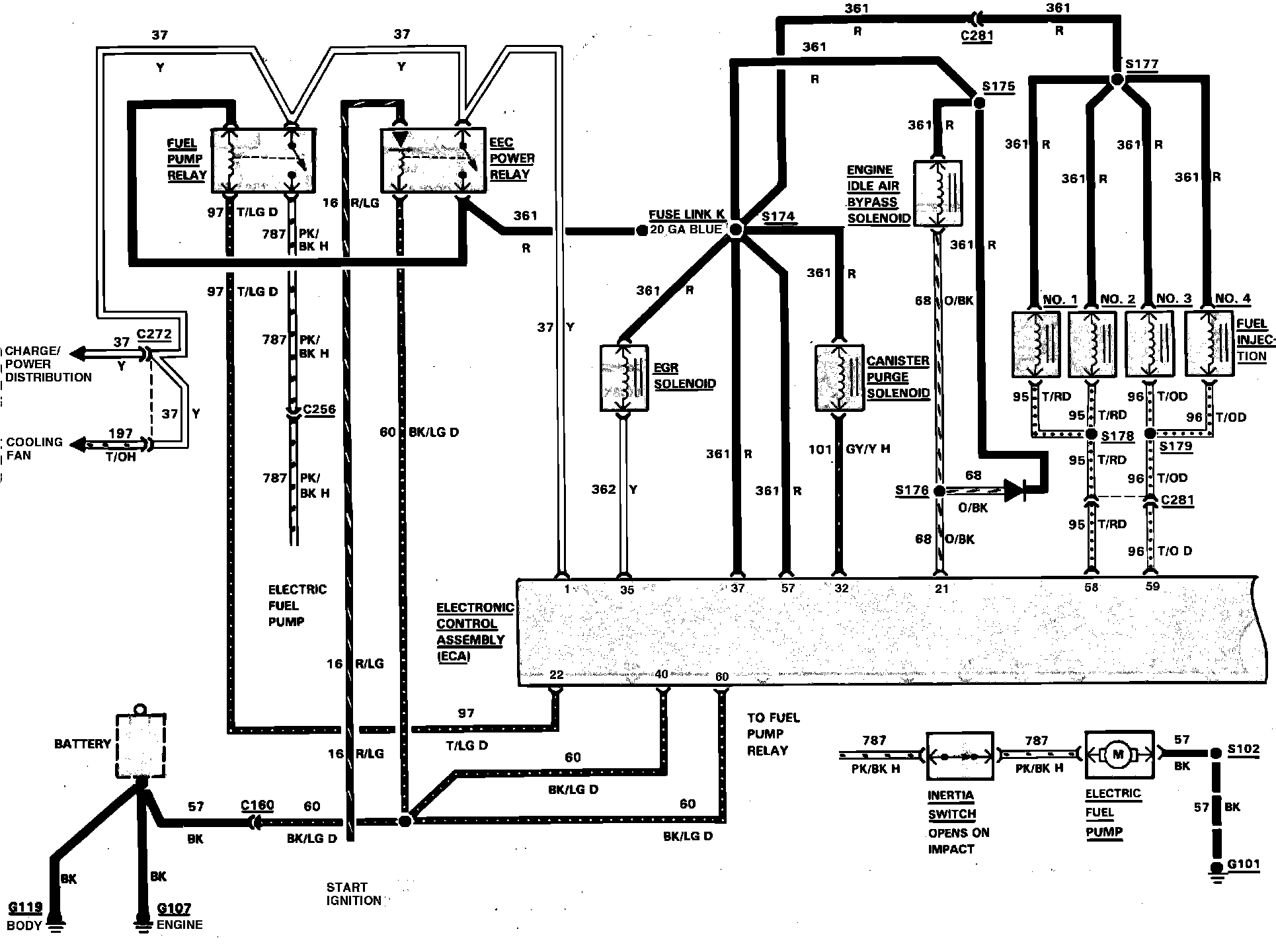 Fig. 38 Electronic engine control wiring circuit (Part 1 of 2). 1984 Escort, EXP & Lynx: