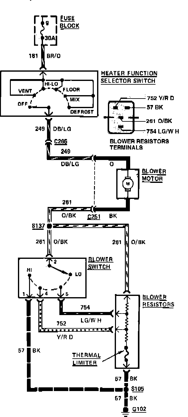 Fig. 37 Heater Wiring Circuit. 1983-84 LTD & Marquis: