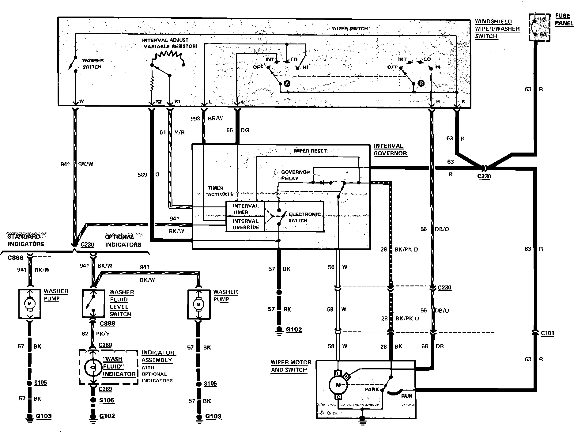 Fig. 92 Windshield Wiper & Washer Wiring Circuit. 1984 LTD & Marquis with Intermittent Wipers: