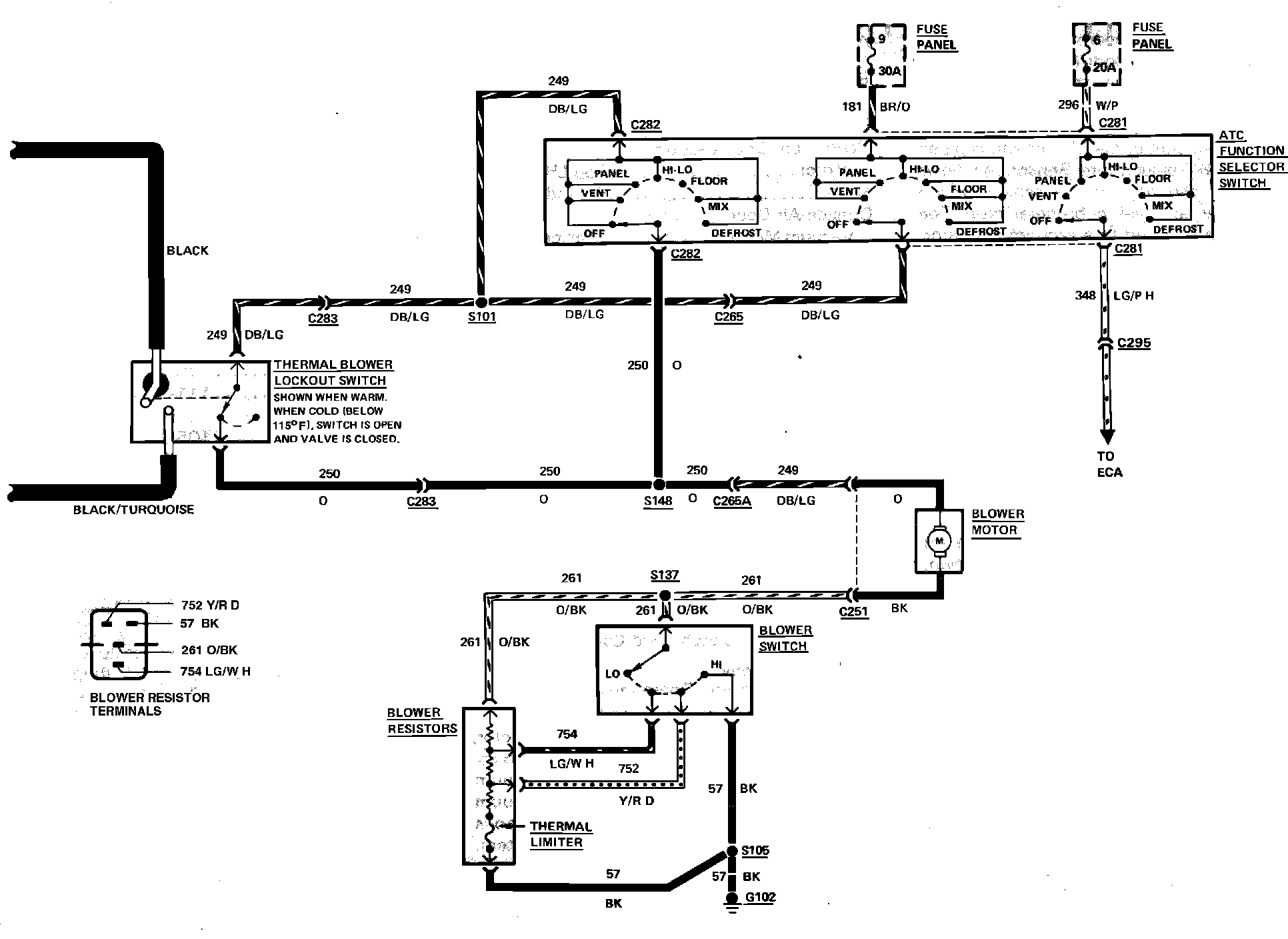 Fig. 11 Air Conditioning & Heater Wiring Circuit. 1984 LTD & Marquis with Automatic Temperature Control: