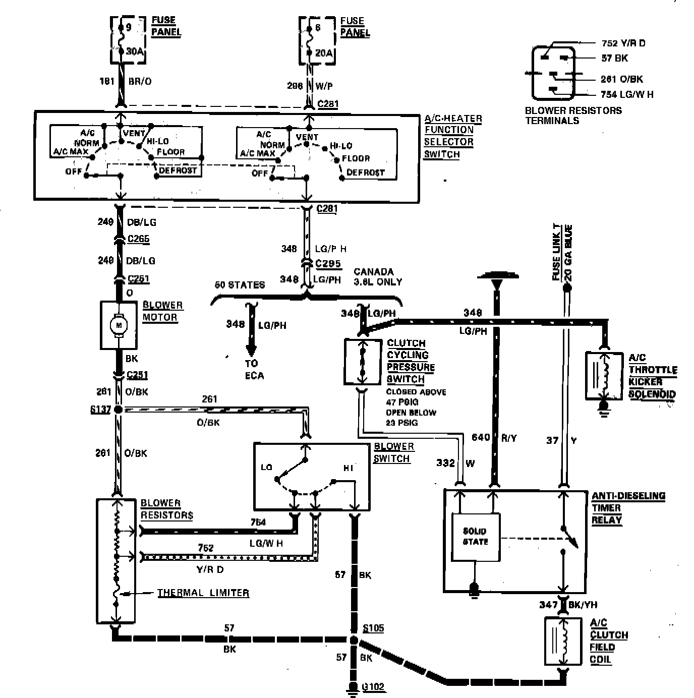 Fig. 10 Air Conditioning & Heater Wiring Circuit. 1984 LTD & Marquis less Automatic Temperature Control: