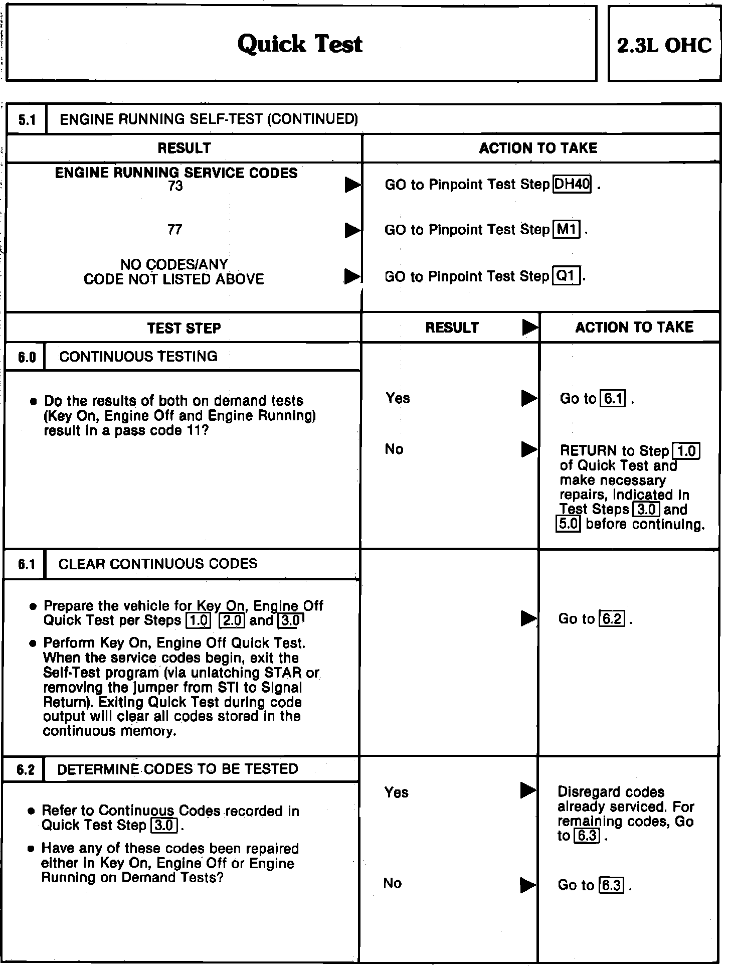 5.1 (Codes), 6.0, 6.1, 6.2 - Engine Running & Continuous Test