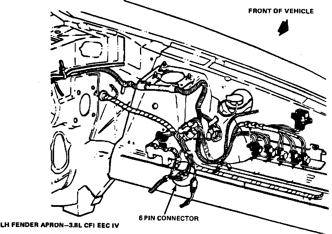 Road splash or antifreeze (a conductive solution) entering the back of the connectors that connect the 14401 wire harness to the 14290 and to the 14289 wire harnesses can cause a short circuit. The short can cause the Idle Speed Control motor shaft to extend and result in increased idle speeds. A six-pin connector connects the 14401 to the 14289 wire harness and a 12-pin connector connects the 14401 to the 14290 wire harness.