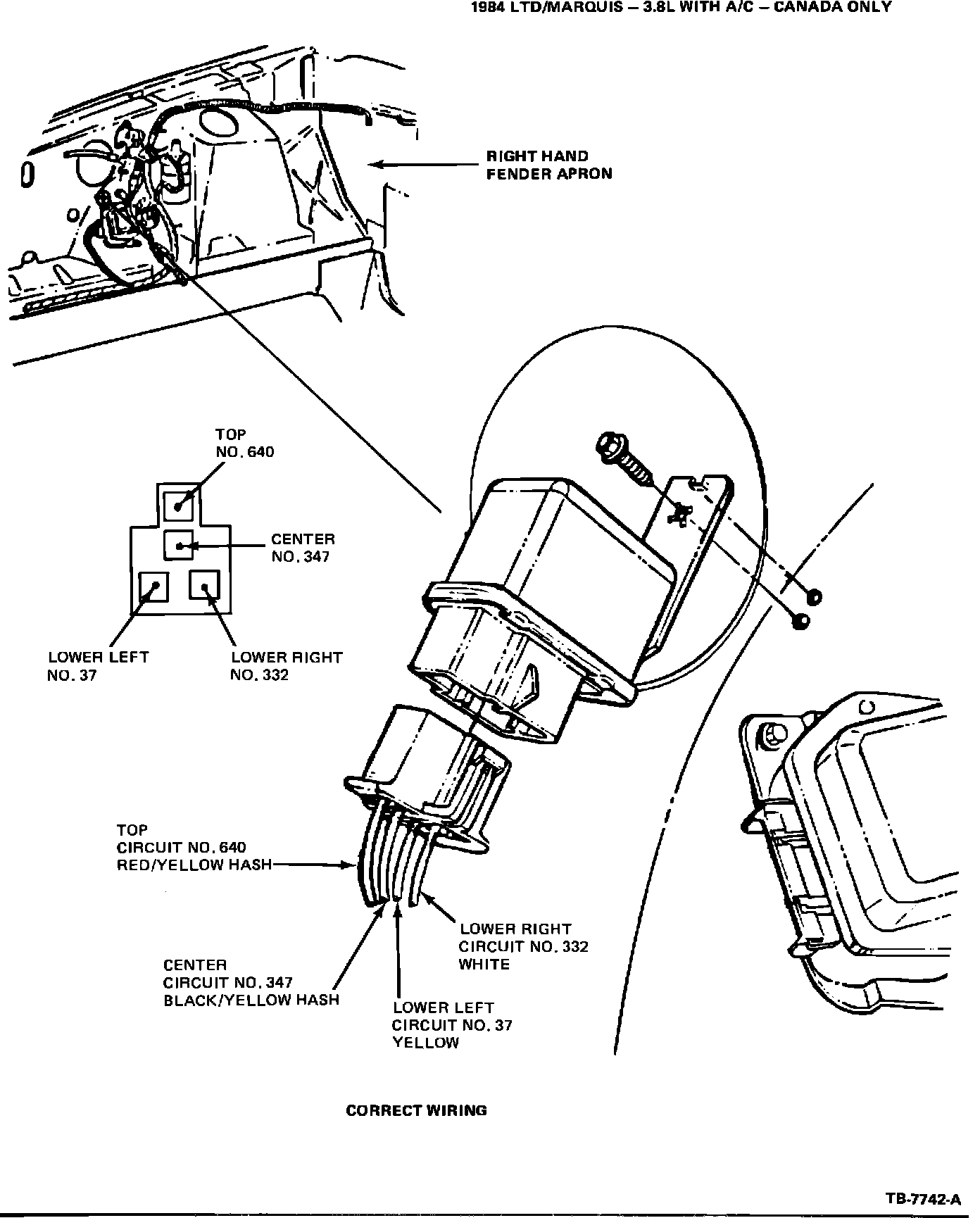4. If the wiring for the relay connector does not agree with Figure 4, remove the connector from the relay and reverse circuits 332 and 347. Reinstall connector.