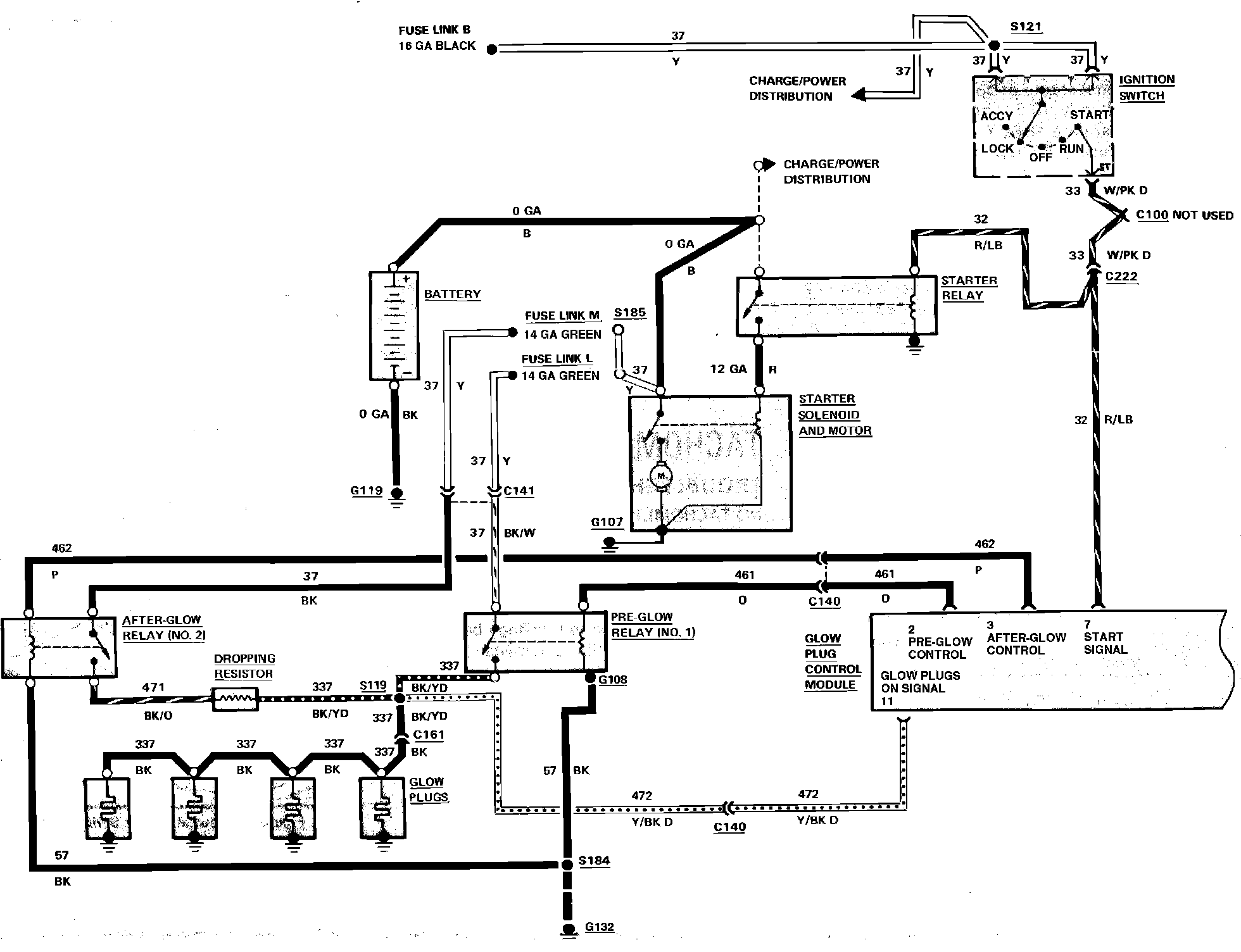 Fig. 58 Ignition, Glow Plug & Starting System Wiring Circuit (Part 1 of 2). 1984 Escort & Lynx With Diesel Engine: