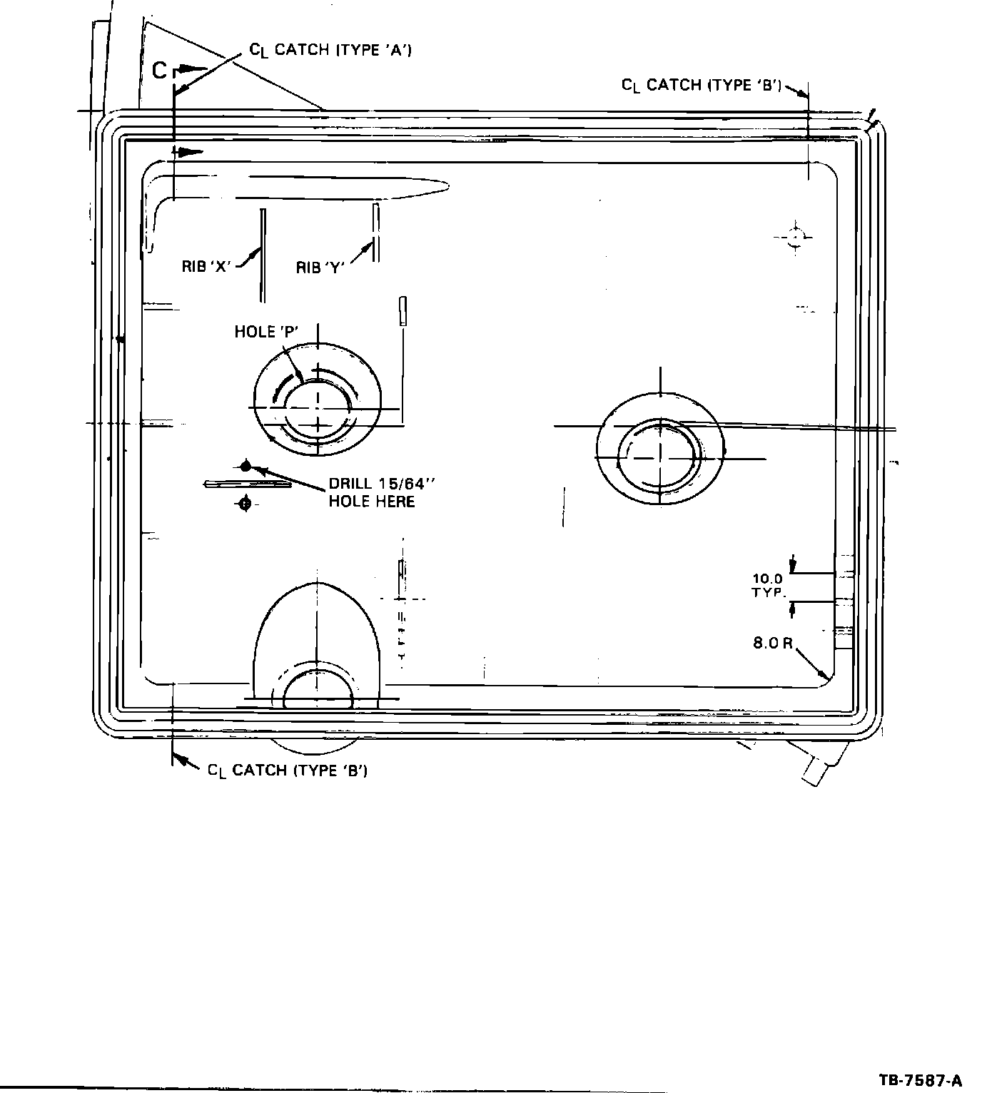 2. In the air cleaner tray, drill a 15/64" hole in the location shown in Figure 14 for the retaining clip.