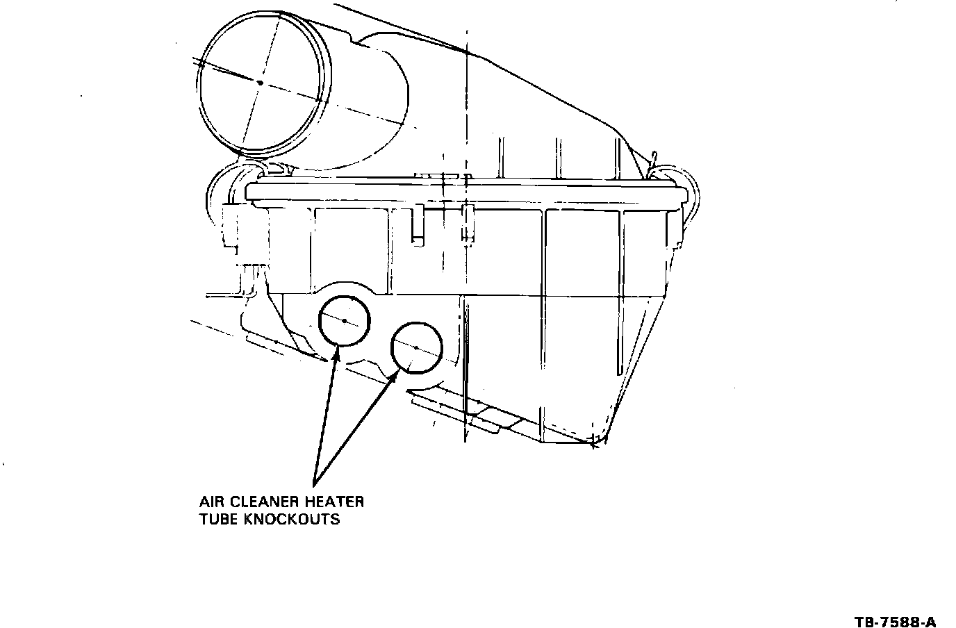3. Remove the 2 knockouts for the air cleaner heater tube inlet and outlet. The knockouts are located in the tray wall opposite the air inlet tube (Figure 15).