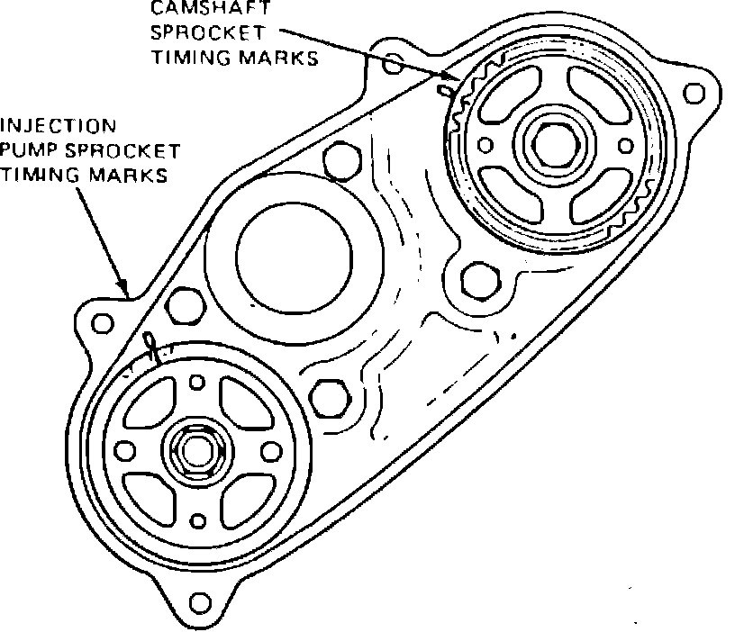 3. Rotate crankshaft until flywheel timing mark is at TDC on No. 1 cylinder, Fig. 17. Ensure injection pump and camshaft sprocket timing marks are aligned with their marks, Fig. 18.