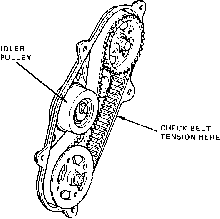 4. Install timing belt as shown in Fig. 14. Adjust timing belt as described in ``Front Timing Belt, Adjust''.