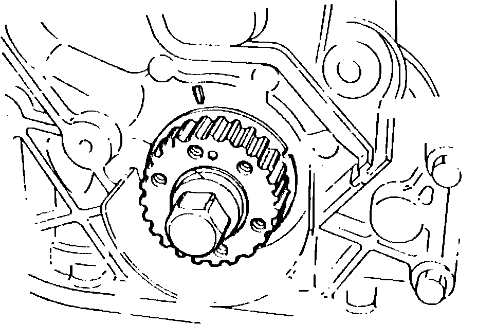 3. Remove crankshaft pulley to crankshaft sprocket bolts.