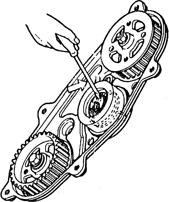 7. Loosen tensioner locknut and adjust timing belt as described under ``Rear Timing Belt, Adjust''.