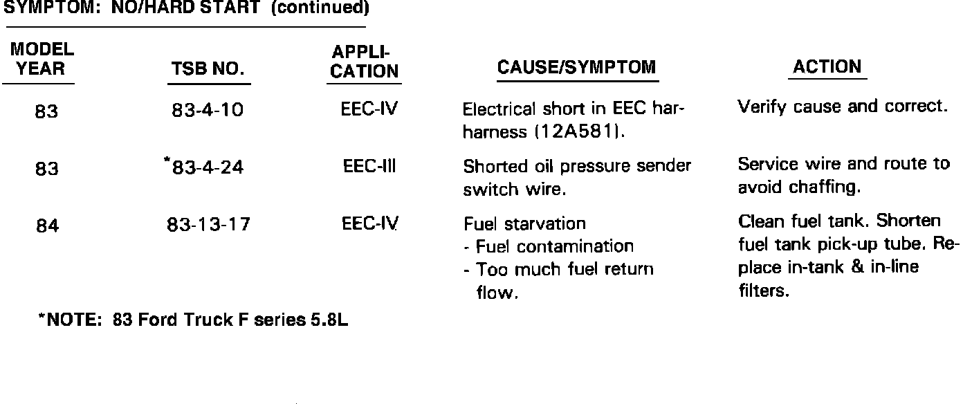 Symptom:No/Hard Start