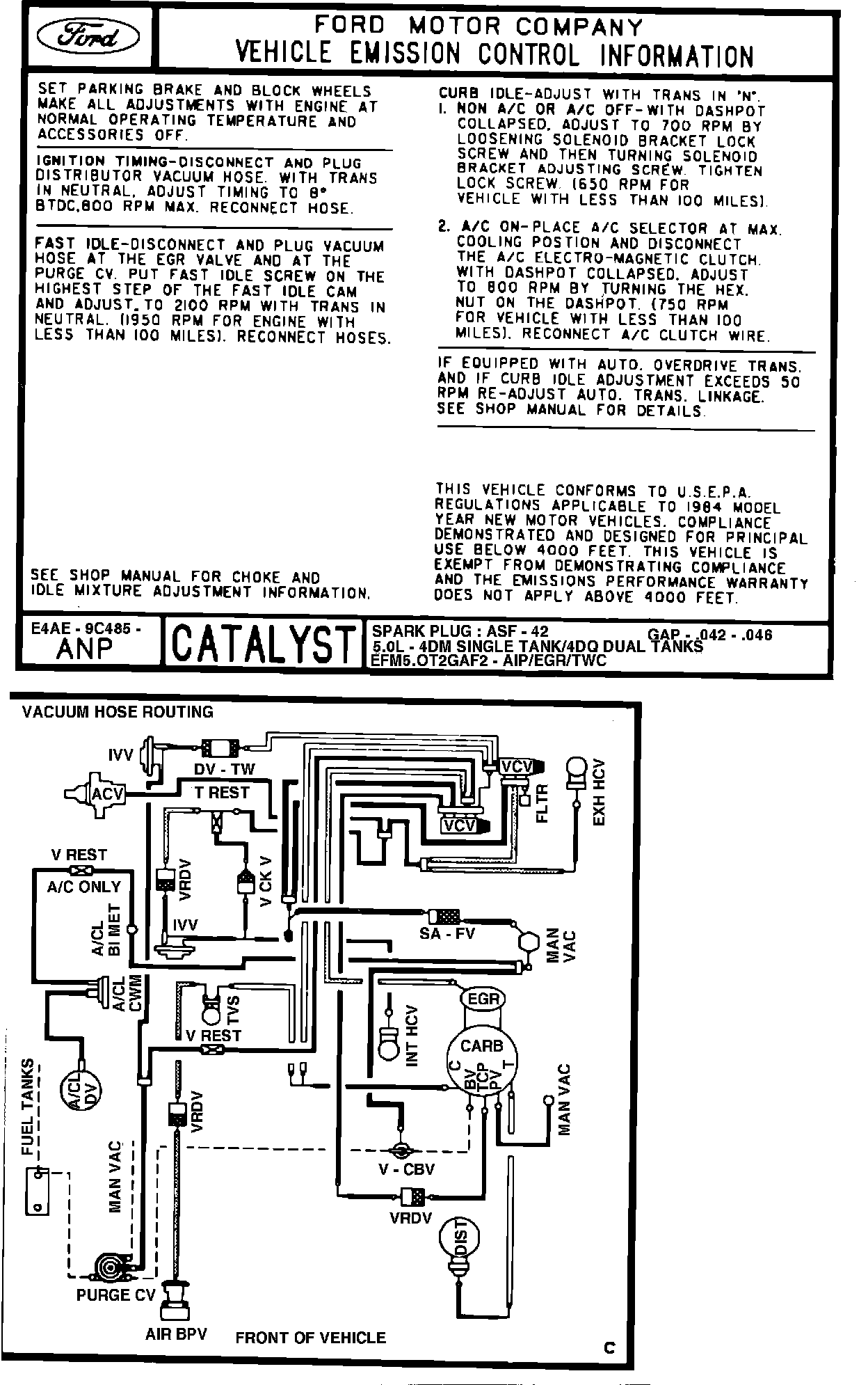 MODEL YEAR: 1984 ENGINE: 5.0L