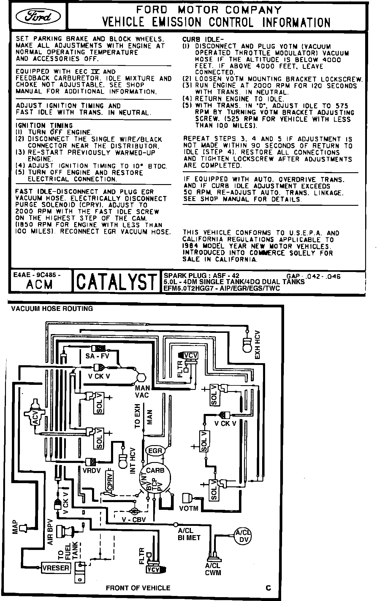 MODEL YEAR: 1984 ENGINE: 5.0L