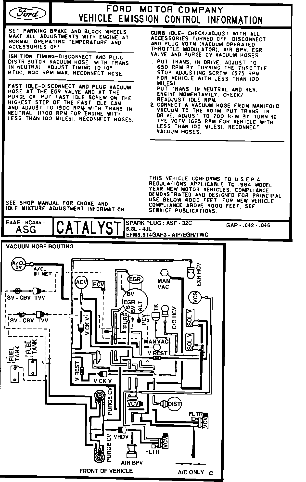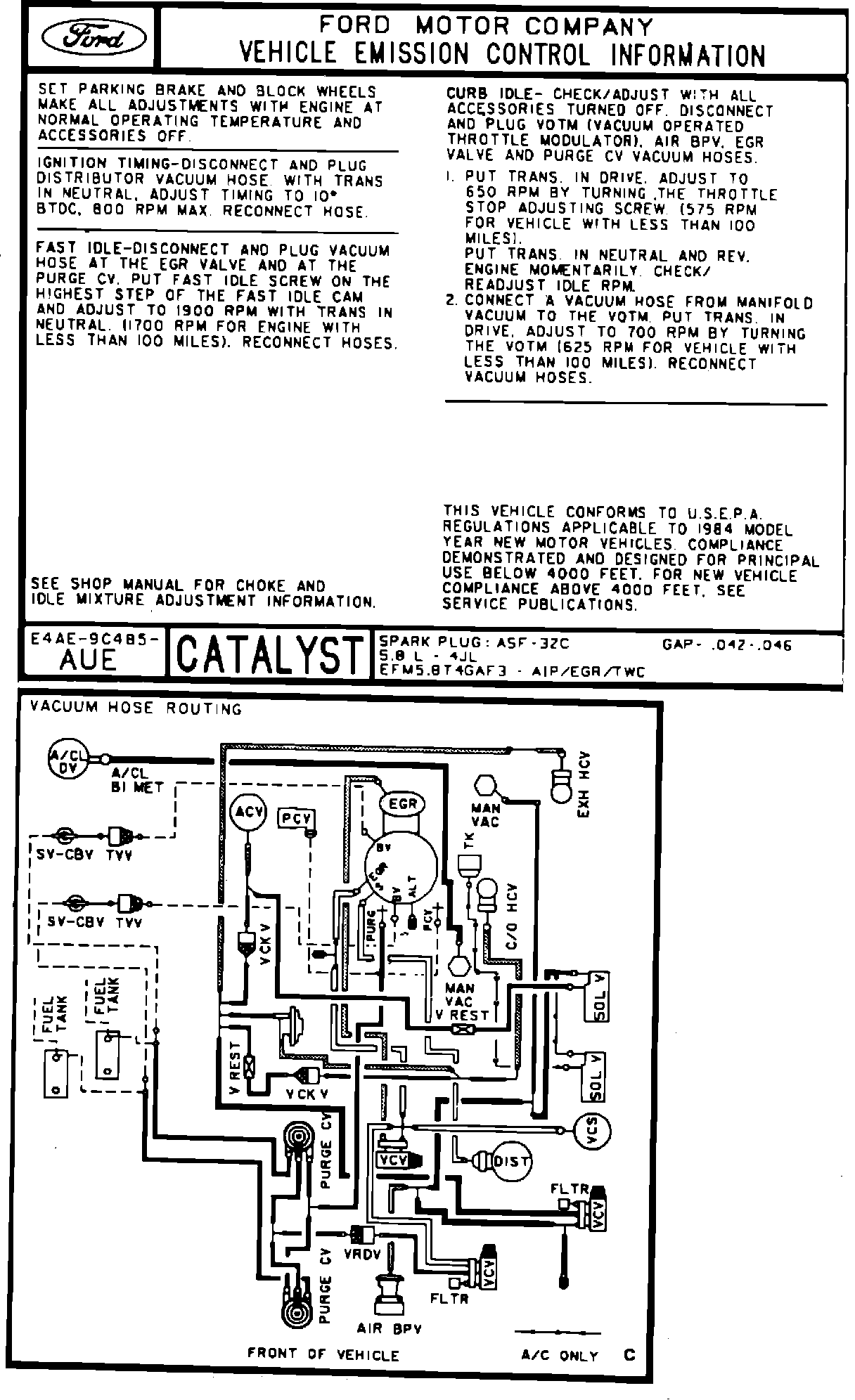 MODEL YEAR: 1984 (E Series) ENGINE: 5.8L