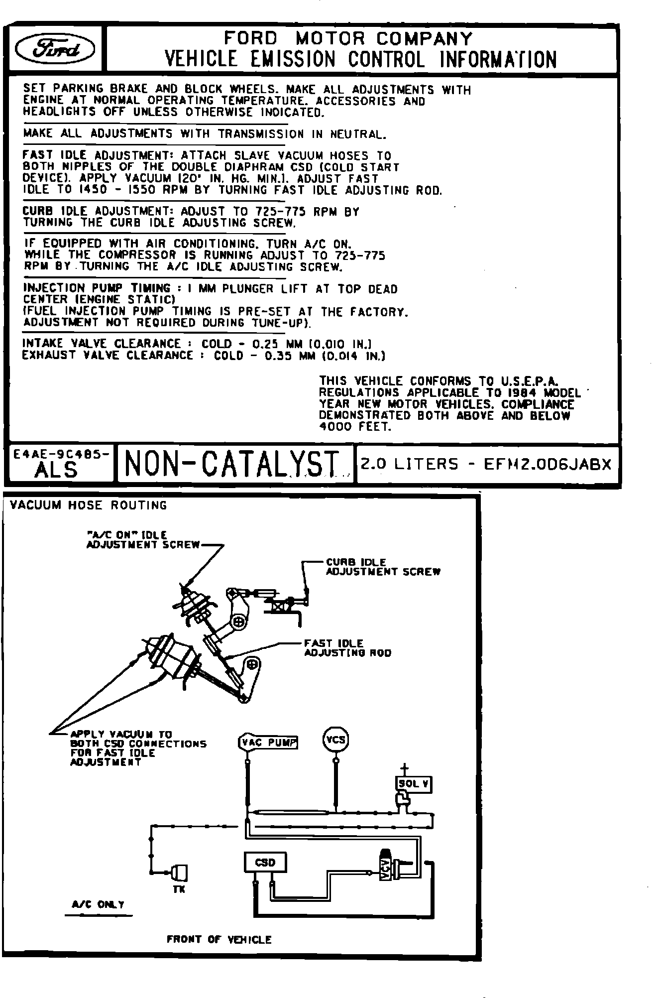 MODEL YEAR: 1984 CAR ENGINE: 2.0L