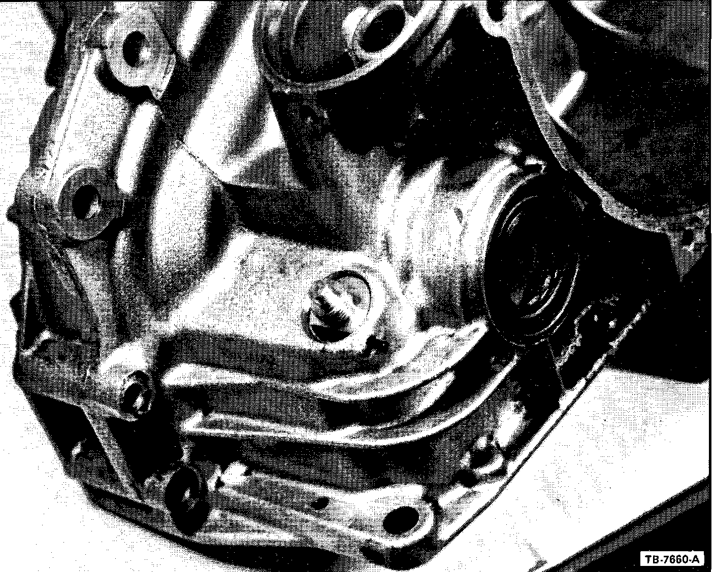 Driving the speedo gear and retainer assembly too far into the case can damage the drive (17285) gear and its mating components (i.e., speedo driven gear [17281] and governor driven gear [7F419]), because it allow the retainer to contact the drive gear (17285) teeth. Misalignment of the retainer into the case may also allow the retainer to extend too far into the case and contact the drive gear. Either of the above conditions can result in damage or premature wearing of the speedometer and governor gears. The result is a loss of speedometer speed control or governor function. If either driven gear is replaced, then the drive gear and the other driven gear should be inspected and replaced if necessary. Governor driven gears that exhibited an "hour glass" wear pattern will require the entire governor gear assembly (7C053) to be replaced due to possible internal damage.