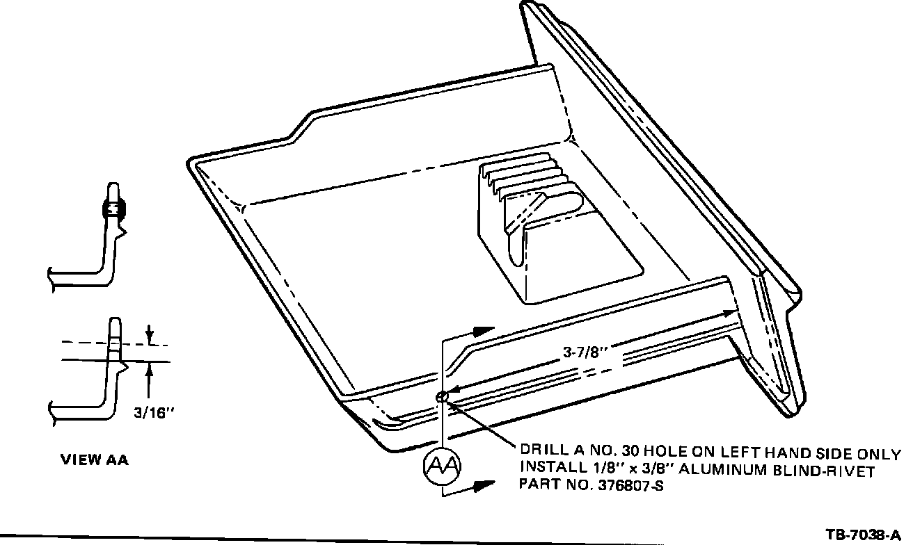 Remove the ash receptacle from console and install a blind rivet (part number 376807-S or procure locally) on the. L.H. side of ash receptacle as shown on Figure 2.