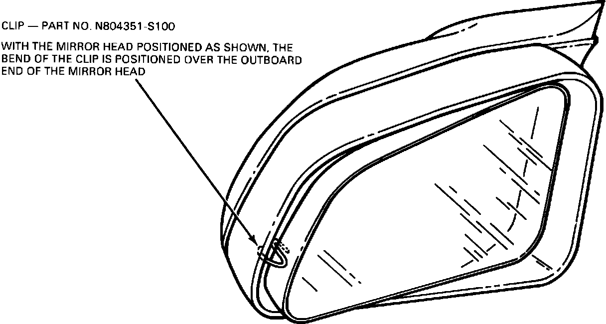 To correct this concern, attach a small clip (part number N804351-S100) to the outer lower end of the mirror head so that it interferes with the mirror cover. Refer to Figure 2.