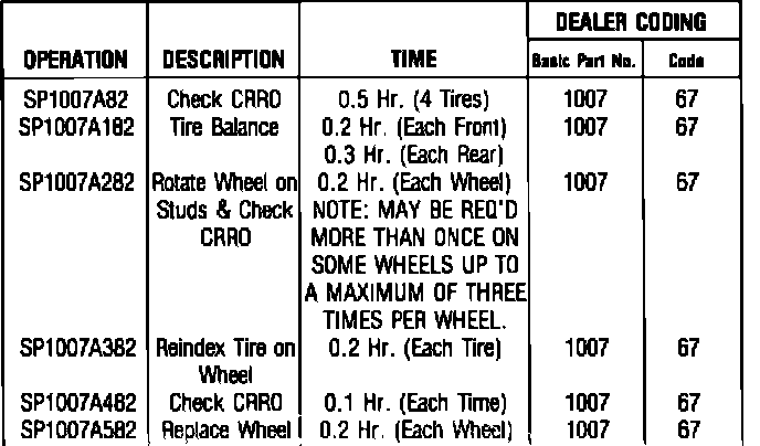 NOTE: When measuring center rib runout, use care to determine the true wheel/tire assembly runout by ignoring "spikes" in the runout readings which last for less than 5~ of the tire circumference. These "spikes" can be caused by tire irregularities but do not affect ride. (See Figure 30 for Iron Cross and 4Y wheel identification.)