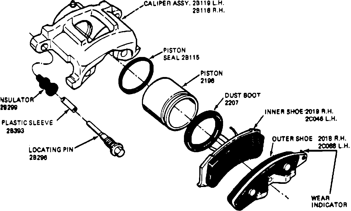 Fig. 1 Kelsey-Hayes pin slider disc brake caliper (Typical):