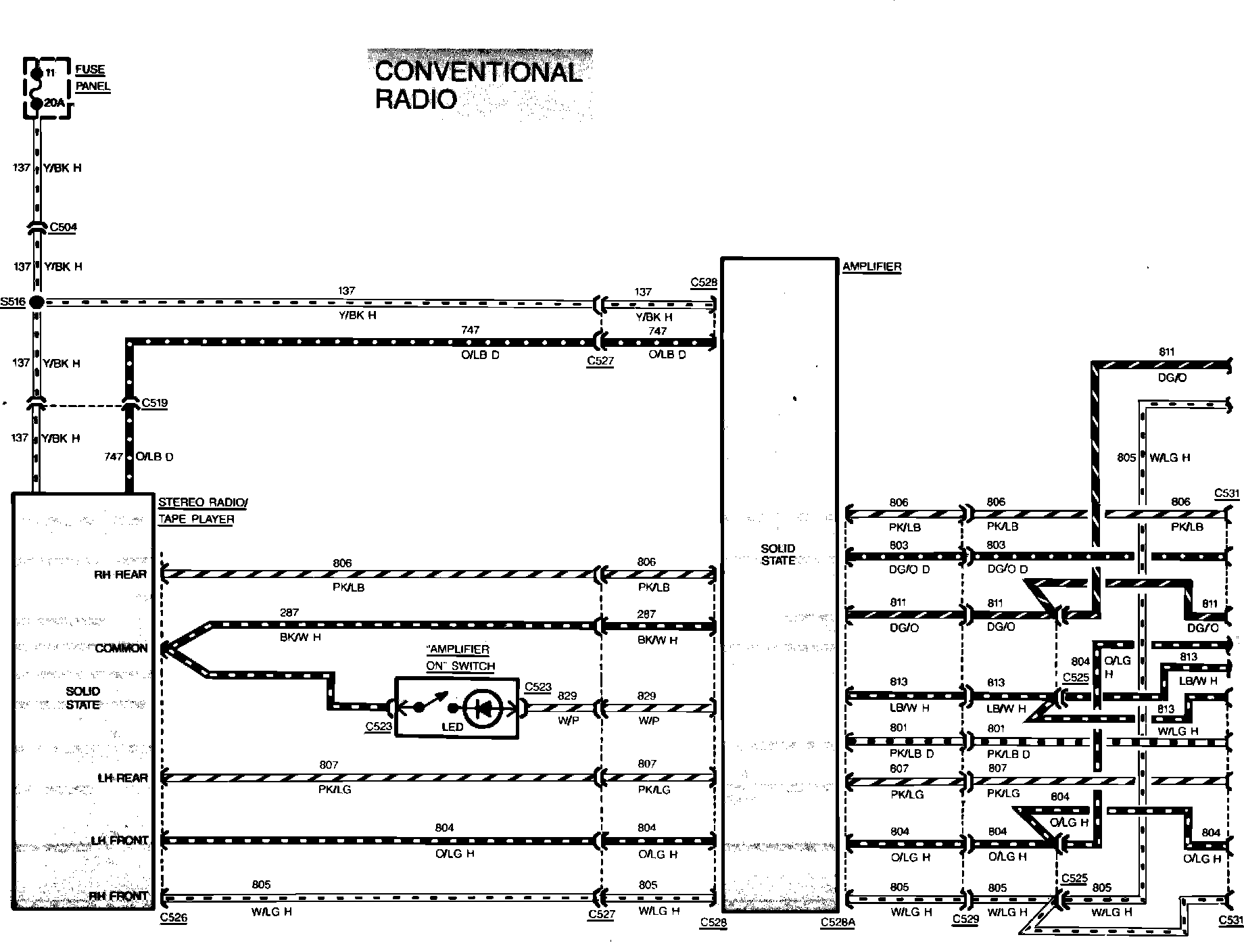 Fig. 29 Radio & Speaker Wiring Circuit (Part 1 of 2). 1984 Tempo & Topaz With Conventional Stereo Radio & Premium Sound: