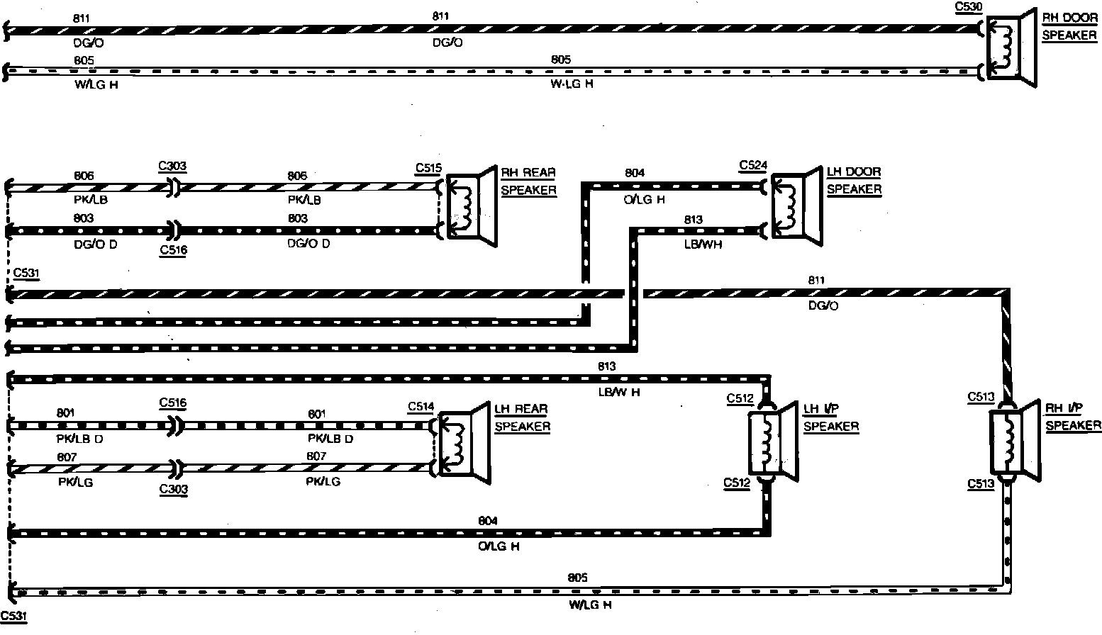 Fig. 29 Radio & Speaker Wiring Circuit (Part 2 of 2). 1984 Tempo & Topaz With Conventional Stereo Radio & Premium Sound: