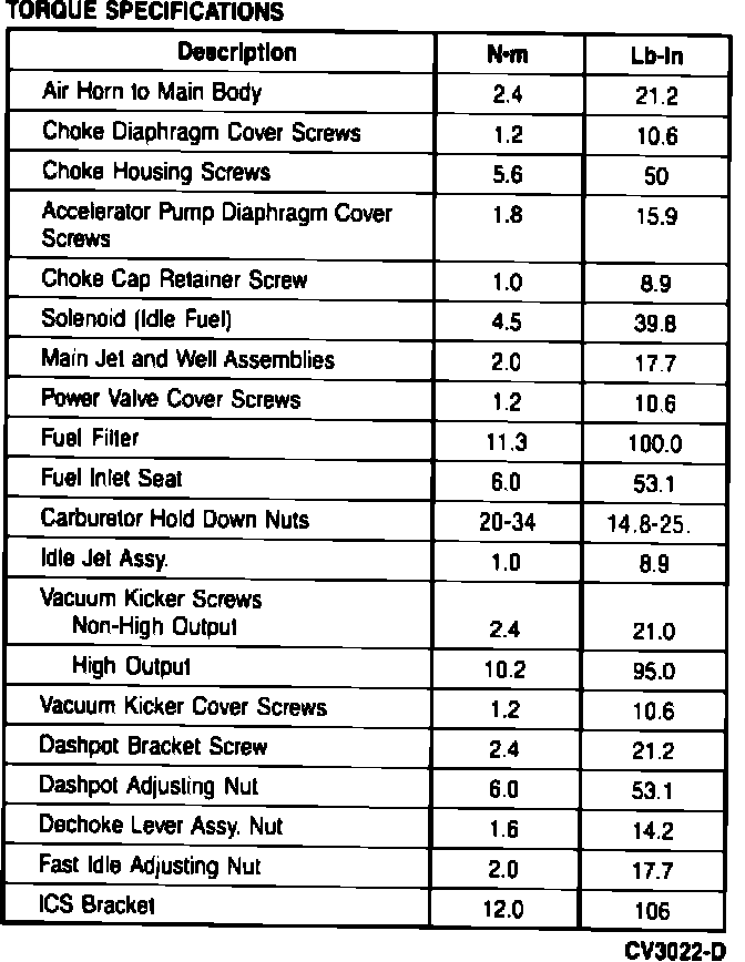 c. The cam spring tab must be located to the left of the fast idle cam lever. Install primary choke link to dechoke lever and dechoke lever to choke housing shaft. Install washer and nut, tighten to 1.6 N-m (14.2 lb.in).