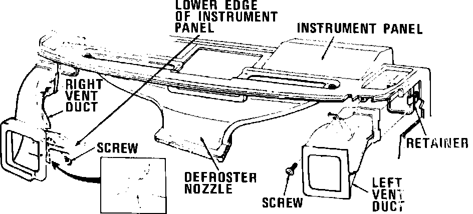 3. Remove screw securing right register duct to lower right edge of instrument panel.